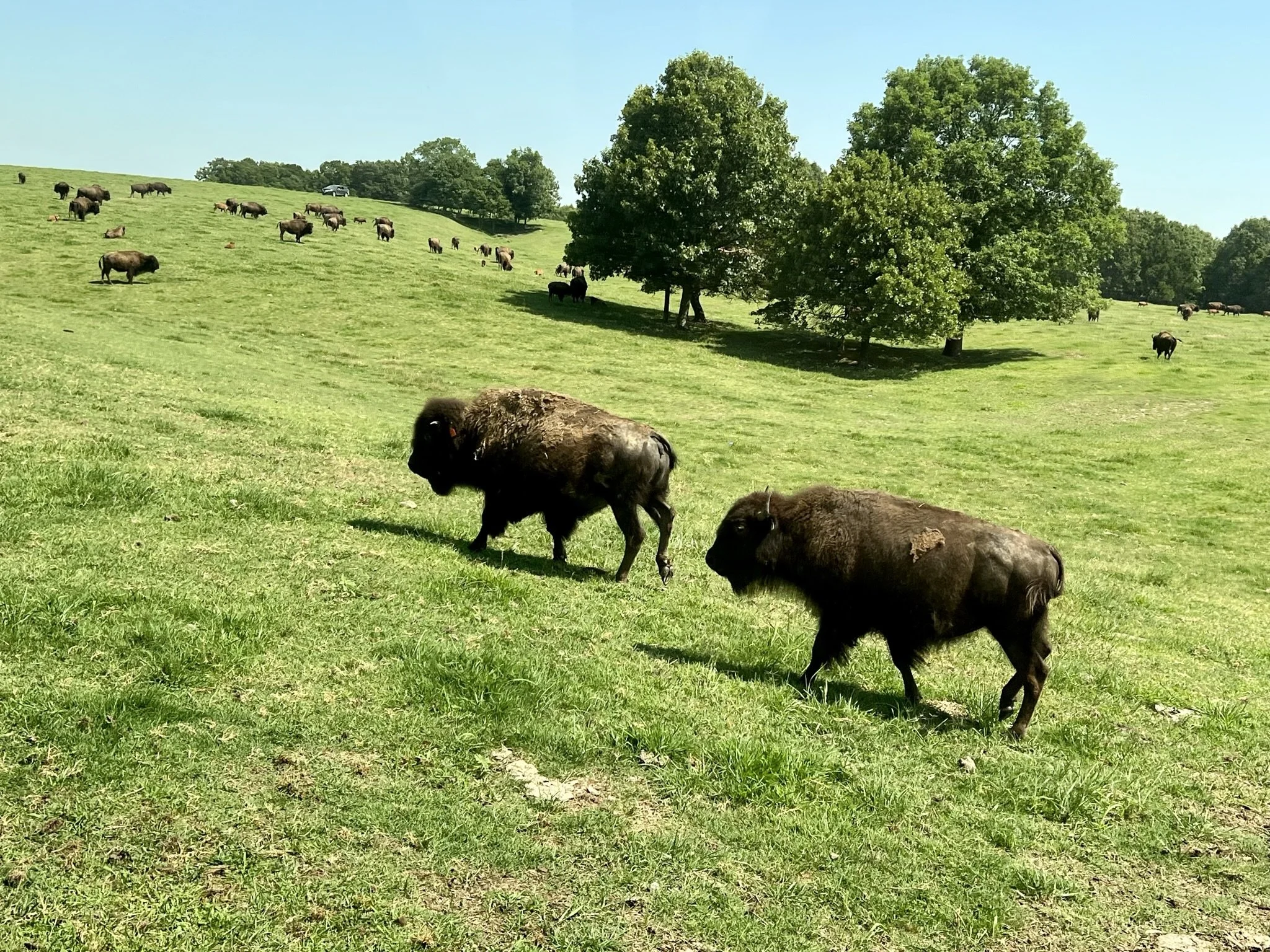 Cherokee Nation had a bison herd in the 1970s and began a herd again in 2014, which has been expanding in recent years. Our tribe’s bison herd lives at Bull Hollow Buffalo Ranch, which had approximately 350 in 2022 (having come from South Dakota, North Dakota, and Wyoming). As tribal citizens, we collectively own and are responsible to this herd, pictured above and below. As the herd grows, there is discussion on using it to provide healthy nutrition for vulnerable populations.